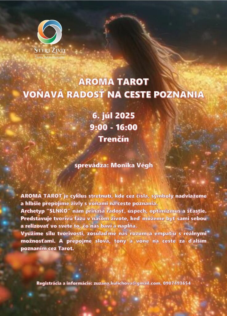 Commenting is Disabled on Škola aromaterapie štyri živly: AROMA TAROT 20. Radosť 06.07.2025 Trenčín